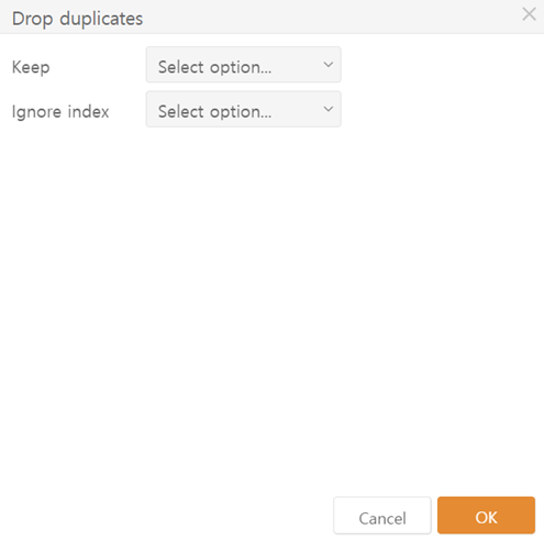 1. ***Keep***: Select which of the duplicate values you want to keep. If you select ***False**,* all duplicate values will be deleted.